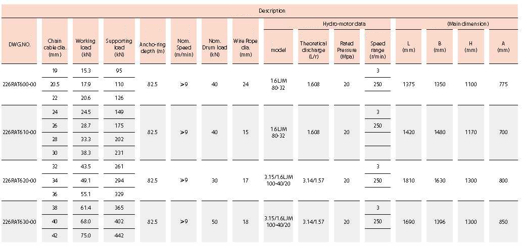 1. Đường kính cáp xích: 19mm đến 73mm