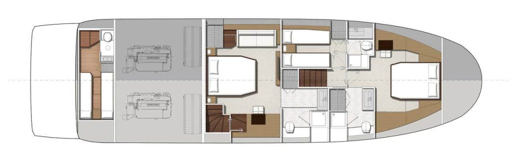 Được tích hợp hoàn hảo với vẻ ngoài năng động, sản phẩm bao gồm một buồng lái được trang bị đầy đủ, một salon hình chữ U, có thể tận dụng làm boong tắm nắng và một lò nướng. Tất cả các tiêu chuẩn chính làm nên thành công của HVG đều có mặt trong chiếc du thuyền tuyệt vời này.